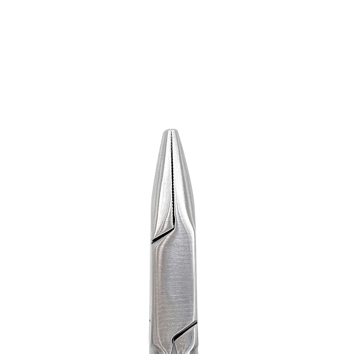 Spre deosebire de cleștii cu suprafețe netede, vârfurile acestui clește sunt prevăzute cu striații fine. Această caracteristică esențială asigură o priză fermă pe arcul de sârmă, eliminând riscul de alunecare în timpul aplicării forței. Rezultatul este o îndoire curată, precisă și o suprafață a arcului intactă, fără zgârieturi sau deformări nedorite.
