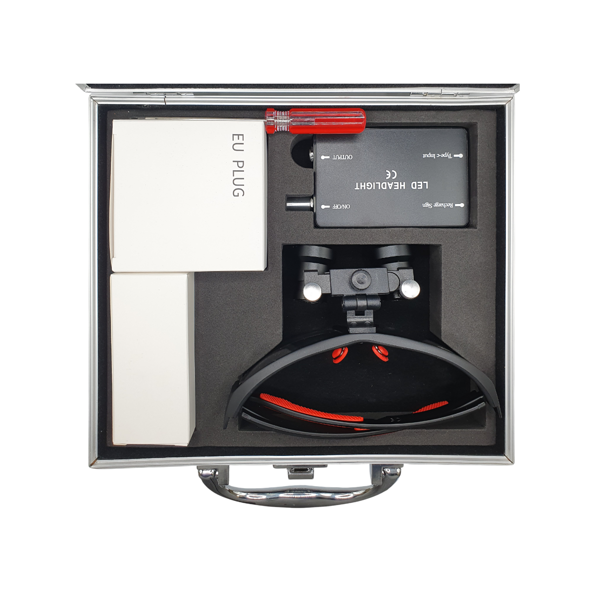 Lupe Binoculare Stomatologice cu LED și Magnificație Variabilă 2.5X – 3.5X
